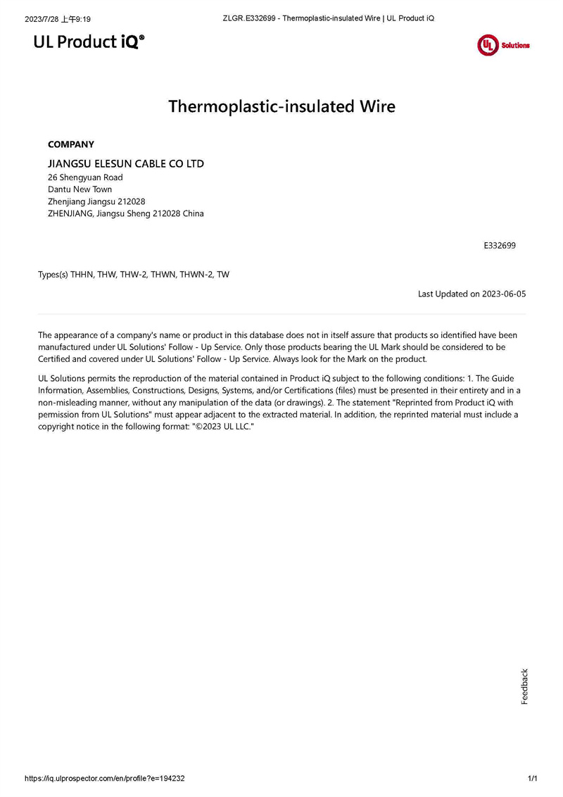 WELCOME TO JIANGSU ELESUN CABLE CO.,LTD.!