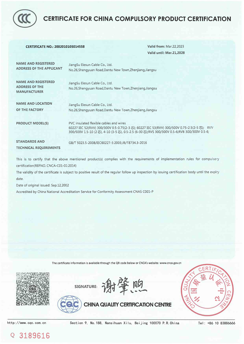 WELCOME TO JIANGSU ELESUN CABLE CO.,LTD.!